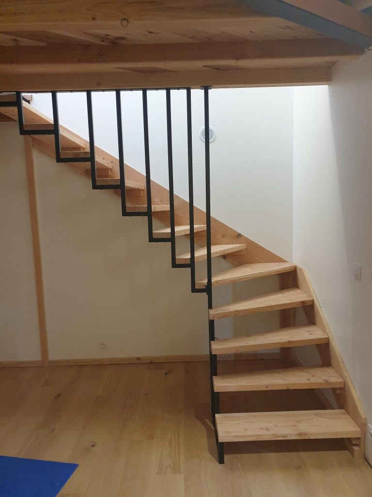 Escalier balancé sur-mesure bois/métal.